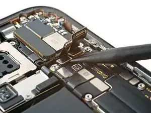Используйте остриё лопатки, чтобы отжать и отключить разъёмы ушного динамика и антенны 5G mmWave.
