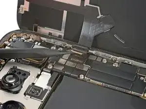 На этом этапе заднее стекло должно быть отделено от рамки. Если заднее стекло кажется застрявшим, проведите по периметру лопаткой, чтобы проверить пропущенные участки клея или защёлки.