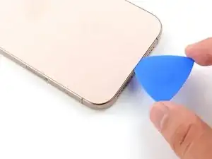 Проведите ломиком вокруг угла и вверх по правому краю, останавливаясь под кнопкой громкости вниз.