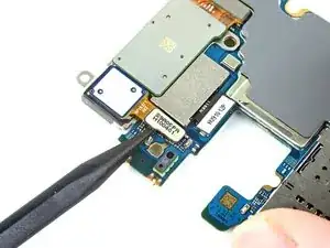 Разъёмы камеры расположены на обратной стороне материнской платы. Вам потребуется снять материнскую плату, чтобы отсоединить модуль задней камеры.