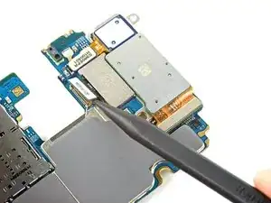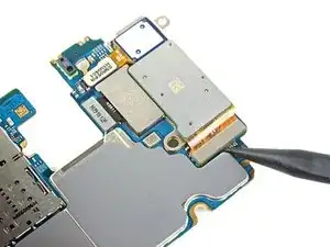 Используйте острый конец лопатки, чтобы приподнять и отключить разъём 5G mmWave-антенны от материнской платы.