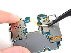Используйте остроконечный конец лопатки, чтобы отключить разъём катушки зарядки S-Pen от материнской платы.