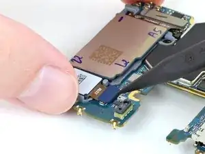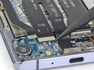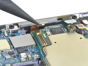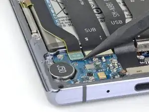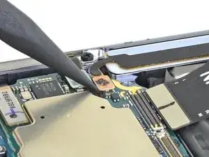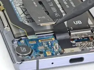 Используйте остроконечный конец лопатки, чтобы отключить пресс-коннектор S-Pen от материнской платы.