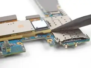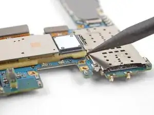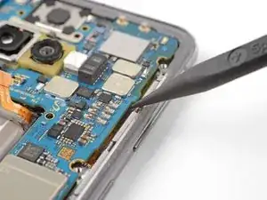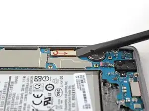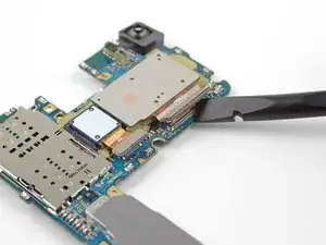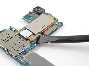 Вставьте плоский конец лопатки под разъём батареи, который прикреплён к плате под тыльной камерой.