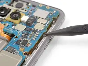 Снимите три крестообразных винта Phillips длиной 3,7 мм, крепящих плату к телефону.