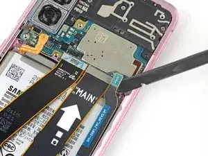 Используйте лопатку, чтобы поддеть и отключить разъём аккумулятора.