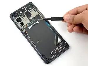 Используйте пинцет, чтобы аккуратно отслоить катушку беспроводной зарядки от устройства.