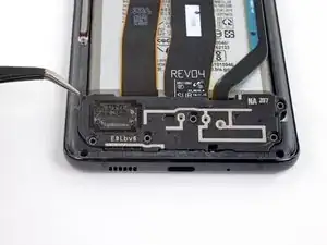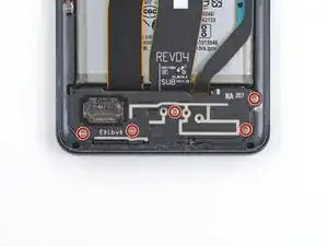 Используйте крестовую отвертку Phillips №00, чтобы отвинтить пять винтов длиной 3,9 мм, фиксирующих динамик и нижнюю среднюю рамку.