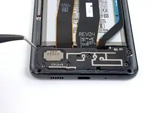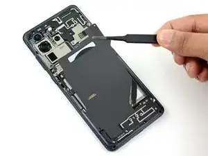 Используйте лопаточку, чтобы приподнять и отключить разъём катушки беспроводной зарядки.
