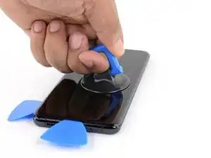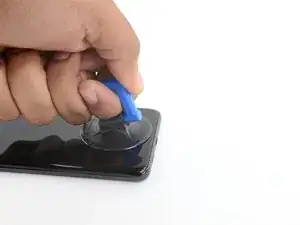 Тяните за присоску сильной, ровной силой, чтобы образовалась щель между задней крышкой и рамкой.