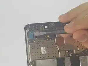 Аккуратно снимите фронтальную камеру, приподняв язычок разъёма.