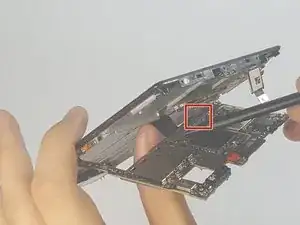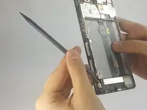 Осторожно удалите любые клеевые полоски, удерживающие аккумулятор, с помощью ногтя или лопатки.