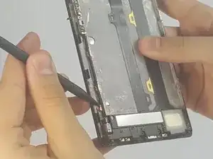 Проведите лопаткой вдоль зазора между телефоном и задней крышкой, чтобы разделить их.