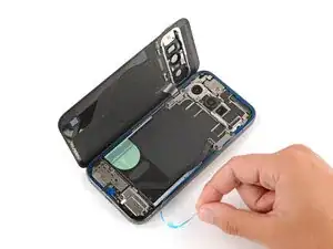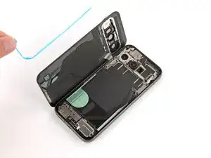 Используйте плоский конец лопатки для подключения разъема нажатия стекла задней панели к его гнезду.