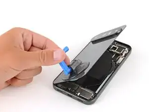 Прикрепите присоску к стеклу задней панели и приподнимите его на левой стороне телефона, чтобы кабель находился близко к разъему.
