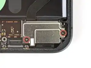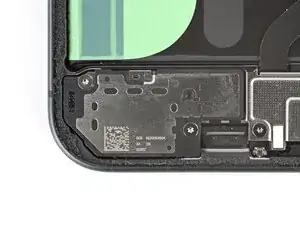 Используйте отвертку Torx Plus 3IP, чтобы удалить два винта длиной 5,0 мм, закрепляющих нижний динамик.