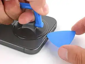 Поднимите присоску с сильной, равномерной силой, пока не образуется зазор между задним стеклом и рамкой.