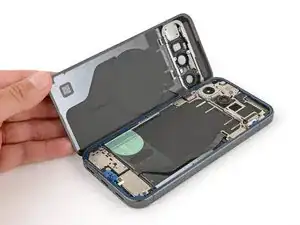 Это может быть сложно, так как у кабеля очень маленькая игра. Перемещайте стекло задней панели по мере необходимости для помощи и не пытайтесь силой вставить разъем на место — переместите его и попробуйте снова.