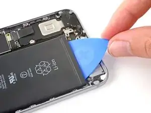 Используйте лопаточку или чистый ноготь, чтобы отсоединить разъём батареи, поддев его прямо вверх от логической платы.