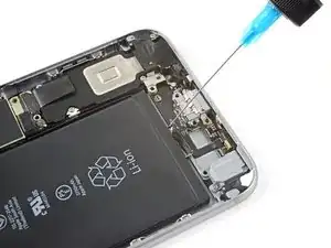 Удалите два пенталобных винта 3,4 мм по обе стороны от разъёма Lightning.