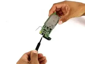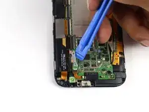 Используйте пластиковой лопаткой, чтобы аккуратно отслоить материнскую плату от сборки дисплея.