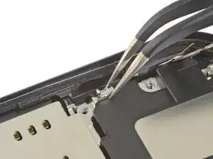 Используйте лопатку или ноготь, чтобы отсоединить разъём шлейфа ЖК-панели.