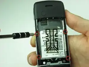 Удалите четыре винта Torx-6 из заднего пластикового корпуса.