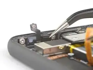 Используйте отвертку Torx T3, чтобы выкрутить два винта 2.4 мм, фиксирующие блок фронтальной камеры и датчиков.