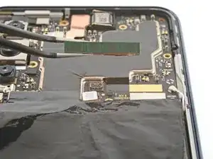 Это одна из двух 5G mmWave антенн. Эта нижняя антенна закреплена на плате и передаёт и принимает сигналы перпендикулярно экрану и наружу от него. Для инструкции по снятию верхней 5G mmWave антенны следуйте этому руководству.
