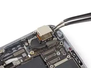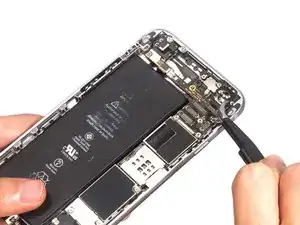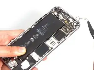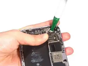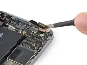 Удалите металлическое крепление разъема аккумулятора из iPhone.