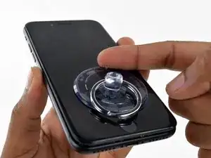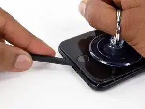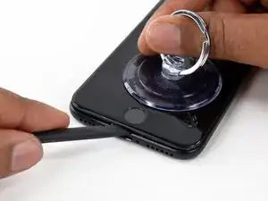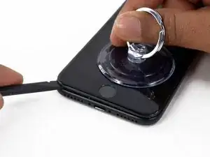 Прикрепите присоску к нижней половине сборки дисплея, чуть выше кнопки «Домой».