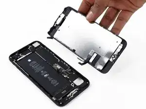 На этом шаге не пытайтесь полностью отделить дисплей — несколько хрупких шлейфов по-прежнему соединяют его с логической платой.