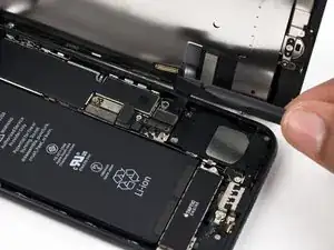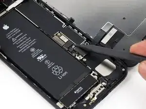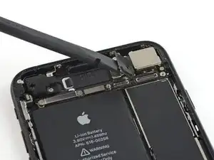 Используйте плоский конец лопатки или ноготь, чтобы отсоединить два нижних разъёма дисплея, поднимая их прямо из гнезд на логической плате.