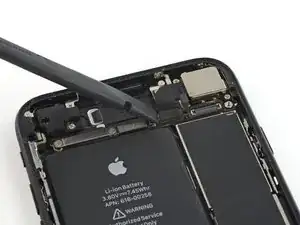 Используйте заострённый конец лопатки, чтобы приподнять разъём аккумулятора из его гнезда на логической плате.