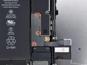 Удалите два винта Phillips 1.3 мм, фиксирующие кронштейн к разъёму передней сенсорной сборки.