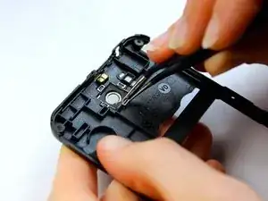 С помощью пинцета аккуратно поместите новый объектив камеры в отсек для объектива и выровняйте зажимы с выемками в средней рамке.