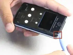 Поднимите уголок и проведите пластиковым инструментом по краю телефона, пока задний корпус не сможет быть легко снят.