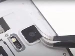 Осторожно подденьте один конец пинцета под объектив задней камеры.