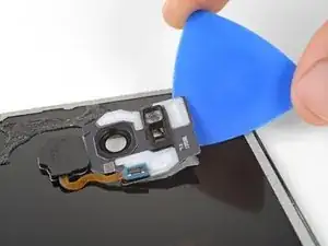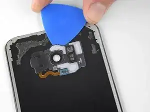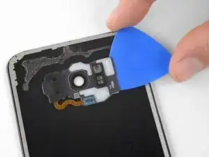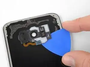 Используйте медиатор, чтобы отжать окантовку камеры от заднего стекла.