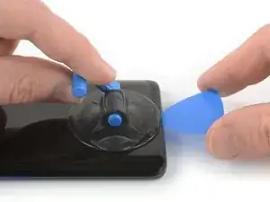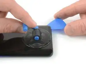 Поднимите заднюю крышку с помощью присоски, чтобы создать небольшой зазор между крышкой и рамкой.