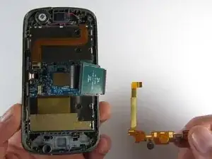 Плёночный шлейф всё ещё прикреплён к материнской плате, поэтому не снимайте плату полностью, иначе вы можете её повредить.
