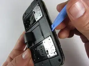 Используйте пластиковый инструмент для вскрытия, чтобы аккуратно снять заднюю крышку.