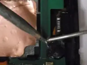 Когда соединение расплавится, используйте пинцет, чтобы снять неисправный динамик с платы.