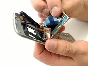 С помощью пальцев подденьте конец аккумулятора и затем выпробуйте аккумулятор из основания телефона.