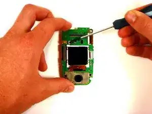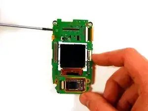 С помощью конца плоской отвертки подденьте серебристый пластиковый корпус LCD от видео логической платы.