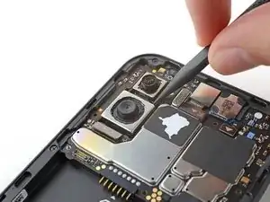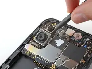 Вставьте ноготь или инструмент для вскрытия, например лопатку, в вырез в нижнем правом углу задней крышки.