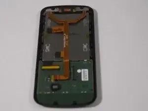 Отогните жёлтую ленту на стороне экрана пинцетом или ногтями. Поднимите экран и плату.