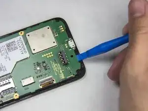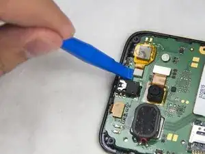 Используйте пластиковый инструмент для открывания, чтобы приподнять и освободить плотно вдавленный разъём передней камеры.