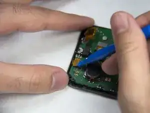 Вставьте один из пластиковых инструментов для открывания в любой стороне основной платы и аккуратно подденьте её, чтобы отсоединить от передней панели. Повторите по всему периметру платы.