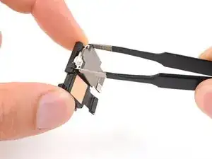 Напряжение в этом кабеле затрудняет повторное подключение. При необходимости зажмите шейку кабеля пинцетом и выровняйте его над гнездом, затем прижмите для фиксации.